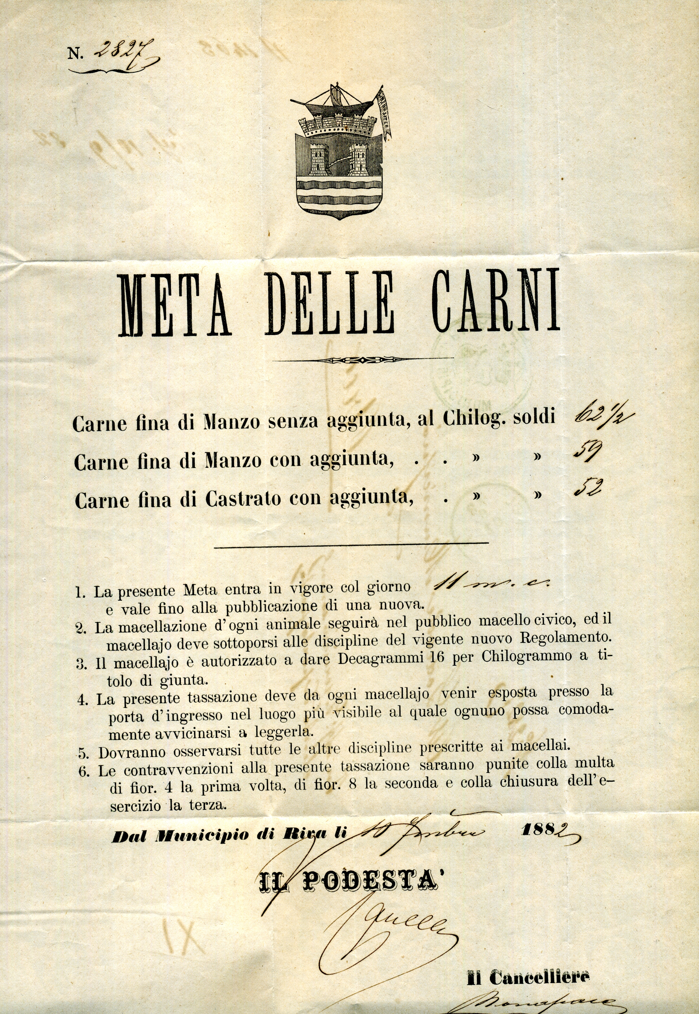 Brief des "Municipio di Riva" an das "Municipio di Arco" mit Aufgabestempel "Riva in Tirol" vom 10. 9. 1882