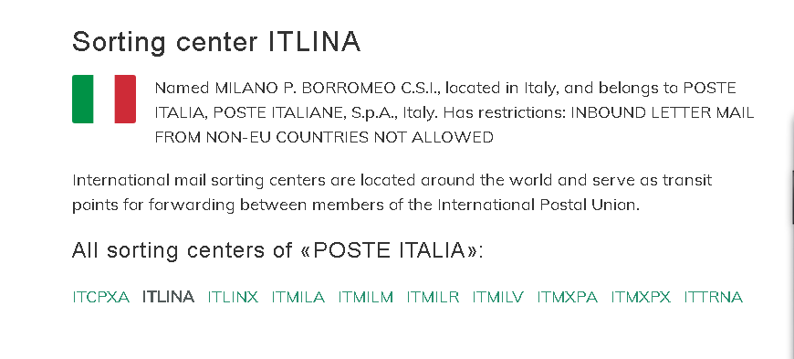 ITLINA ist das Internationale Sortierzentrum MILANO P. BORROMEO am Flughafen Mailand Linate ...