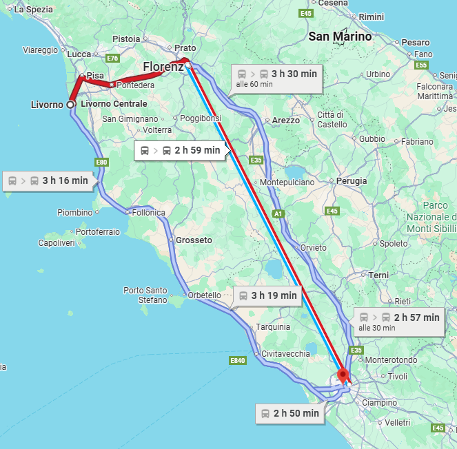 Gut, TrenItalia schafft dass heute mit dem Frecce Rossa, der ab Florenz ohne Zwischenhalt nach Rom fährt, in unter drei Stunden - aber der nimmt keine Post mit.